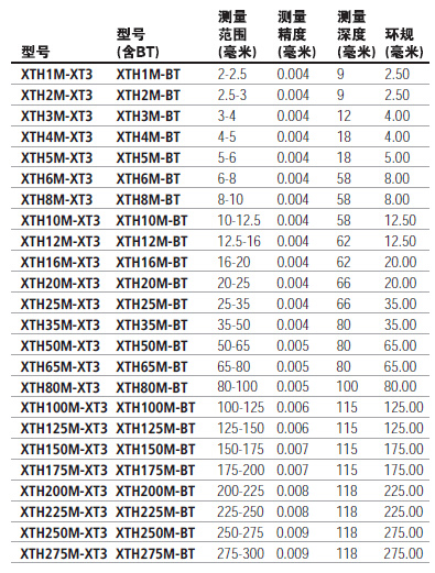 英國寶禾BOWERS XT3 XTH SXTH系列三點(diǎn)式數(shù)顯槍式內(nèi)徑千分尺 測量范圍2-300mm 分辨率0.001mm 硬質(zhì)合金測頭 內(nèi)置藍(lán)牙發(fā)射模塊 無線數(shù)據(jù)傳輸 可測盲孔