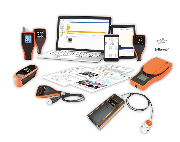 入門級(jí)檢測(cè)套裝,包含粗糙度、氣候、濕膜和干膜厚度。Elcometer 456涂層測(cè)厚儀 通過Bluetooth®(藍(lán)牙)連接至ElcoMaster®數(shù)據(jù)管理軟件,用于無紙化質(zhì)保。