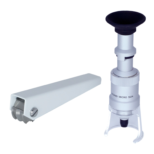 D1002干膜測(cè)厚儀操作簡(jiǎn)單, 先選定刀頭, 然后在被測(cè)工件上劃線(要?jiǎng)澩钢恋撞?, 使用顯微鏡(鏡片上有刻度)和照明光源測(cè)量所劃線的楔形接口的一邊(如上圖箭頭所指斜坡的投影距離), 即可算出涂層的厚度。