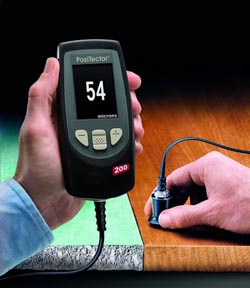 PosiTector200涂層測厚儀出廠時已經(jīng)校準好可直接測量。隨機包括可追溯到NIST或PTB的長式校準證書,該證書記錄了PosiTector200在我們的校準實驗室對可追溯到國家計量機構的標準進行的實際讀數(shù)。 有些廠家提供的證書或合格證書,通常不包括實際的儀器讀數(shù)。 PosiTector200經(jīng)過出廠校準,無需校準或調(diào)整即可測量的大多數(shù)聚合物涂層。如果需要,可以對已知厚度的涂層樣品進行簡單的厚度調(diào)整,使其成分盡可能接近預期應用。為了獲得最佳結果,樣品的厚度應等于或略大于待測涂層的最大預期厚度。 PosiTector200可以用來測量金屬基體上的涂層嗎? 在很多情況下,是可以測量的!但是,應該注意以下幾點: